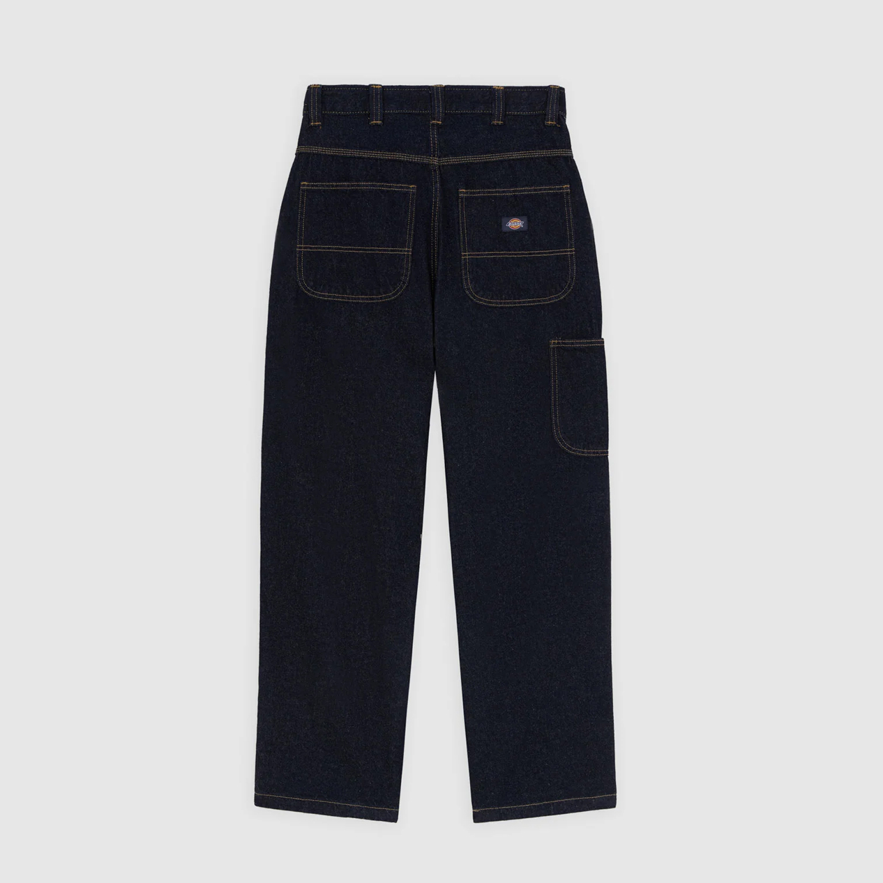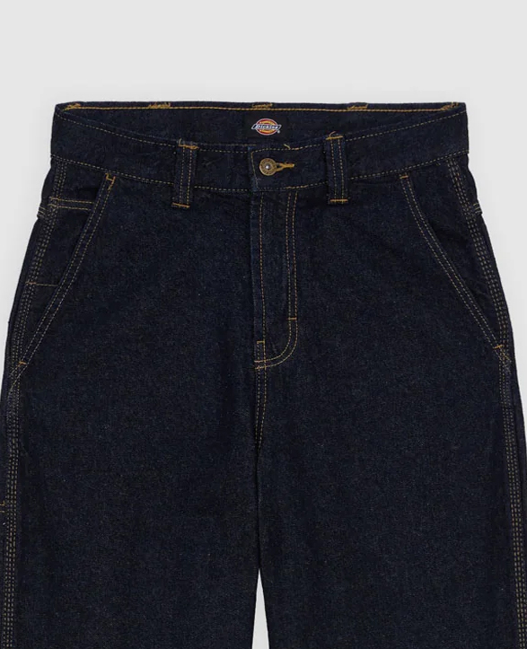 Классические мужские джинсы из качественного денима плотностью 12.5 унций знаменитой американской компании Dickies, которая более ста лет делает качественную одежду, обувь и аксессуары. Джинсы имеют среднюю посадку на поясе, свободный прямой крой, слегка заужены, на молнии, 5 карманов.