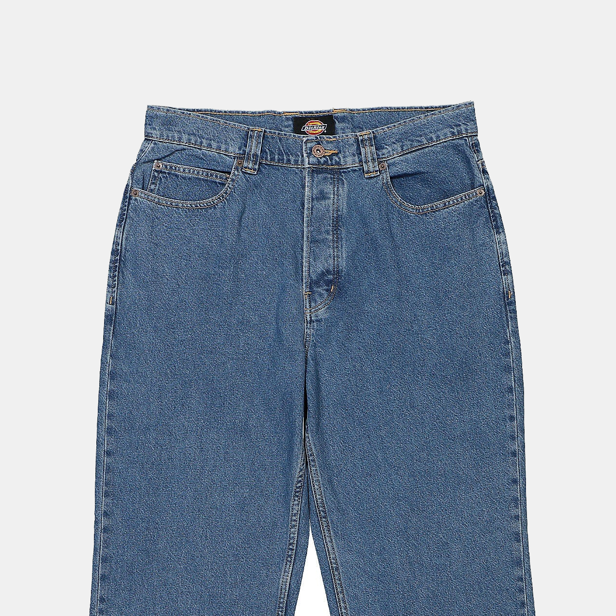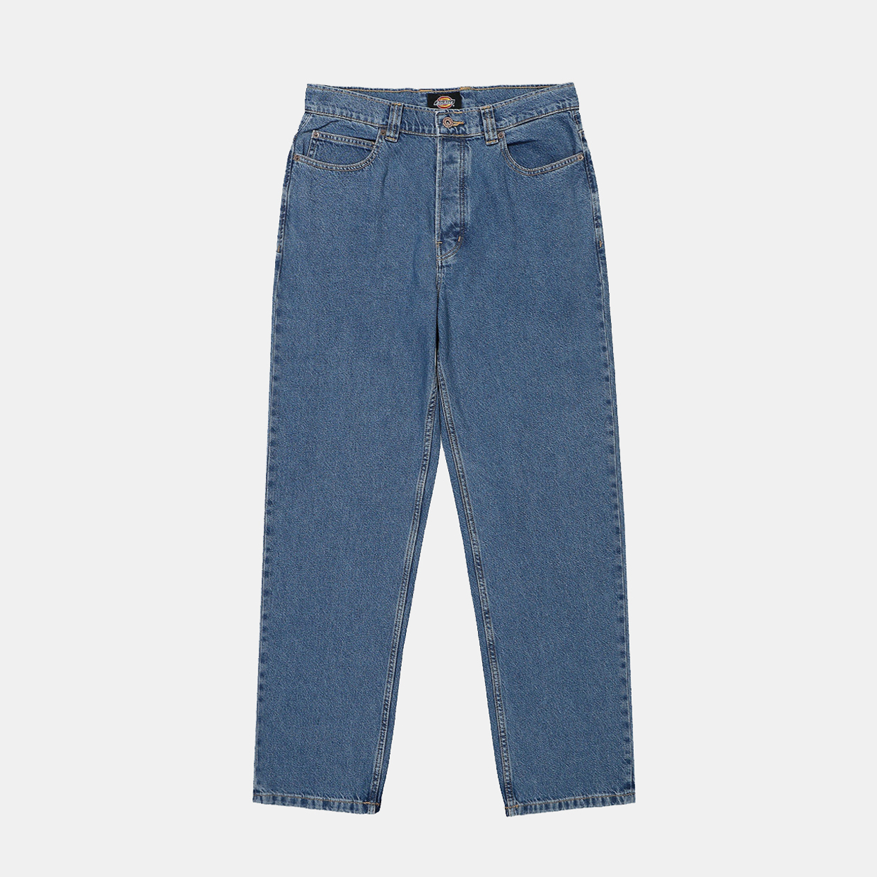 Классические мужские джинсы из качественного денима плотностью 12.5 унций знаменитой американской компании Dickies, которая более ста лет делает качественную одежду, обувь и аксессуары. Джинсы имеют среднюю посадку на поясе, свободный прямой крой, слегка заужены, на молнии, 5 карманов.