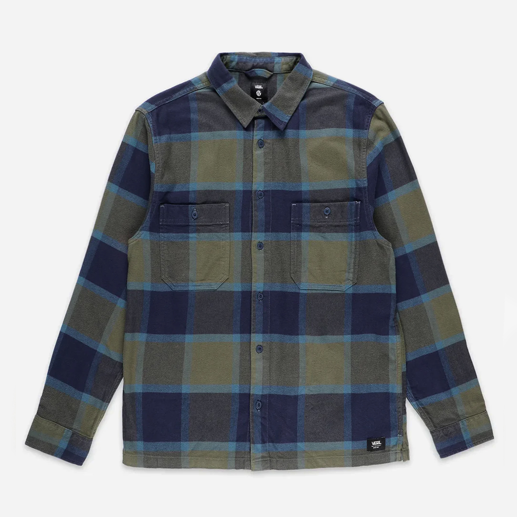 Классическая фланелевая рубашка от американской компании Vans. Свободный крой, два нагрудных кармана, рукава на пуговицах, лаконичное брендирование, свободный крой, модель унисекс.