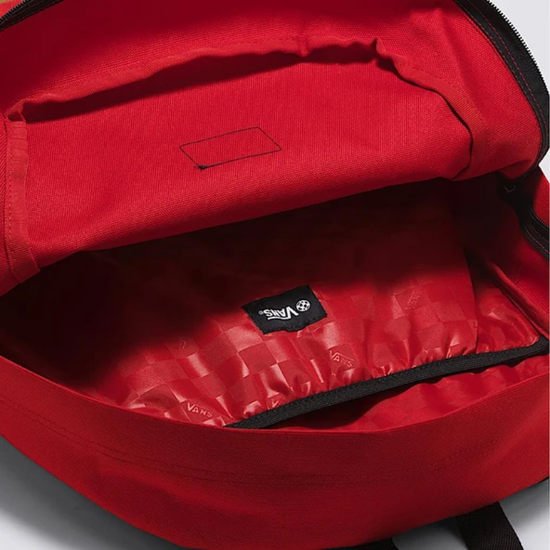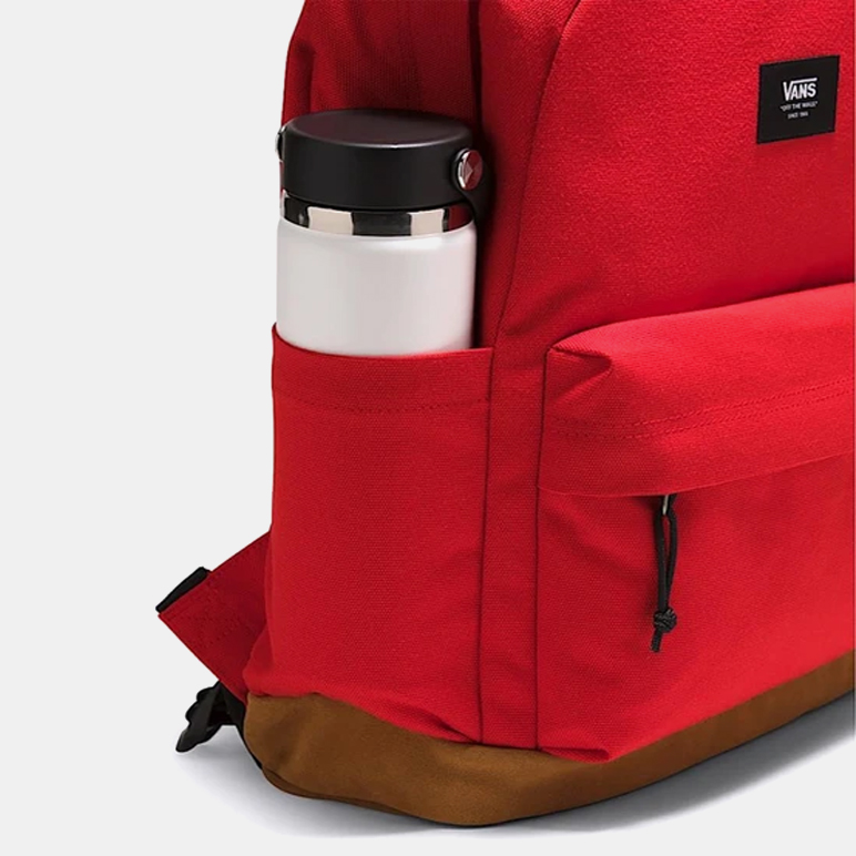 Вместительный рюкзак объёмом 25 литров от американской компании Vans. Износостйкая, водонепроницаемая основа, два основных отделения, два боковых кармана для воды, уплотнённая спинка, надёжная фурнитура с брендированием, эргономичные регулируемые лямки, внутри отдел для лэптопа до 15', небольшой органайзер в маленьком отделении.